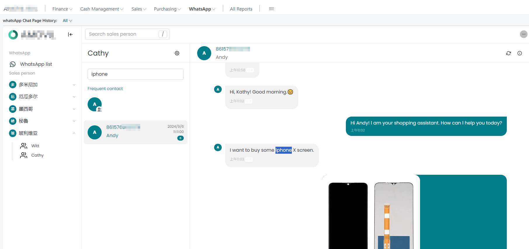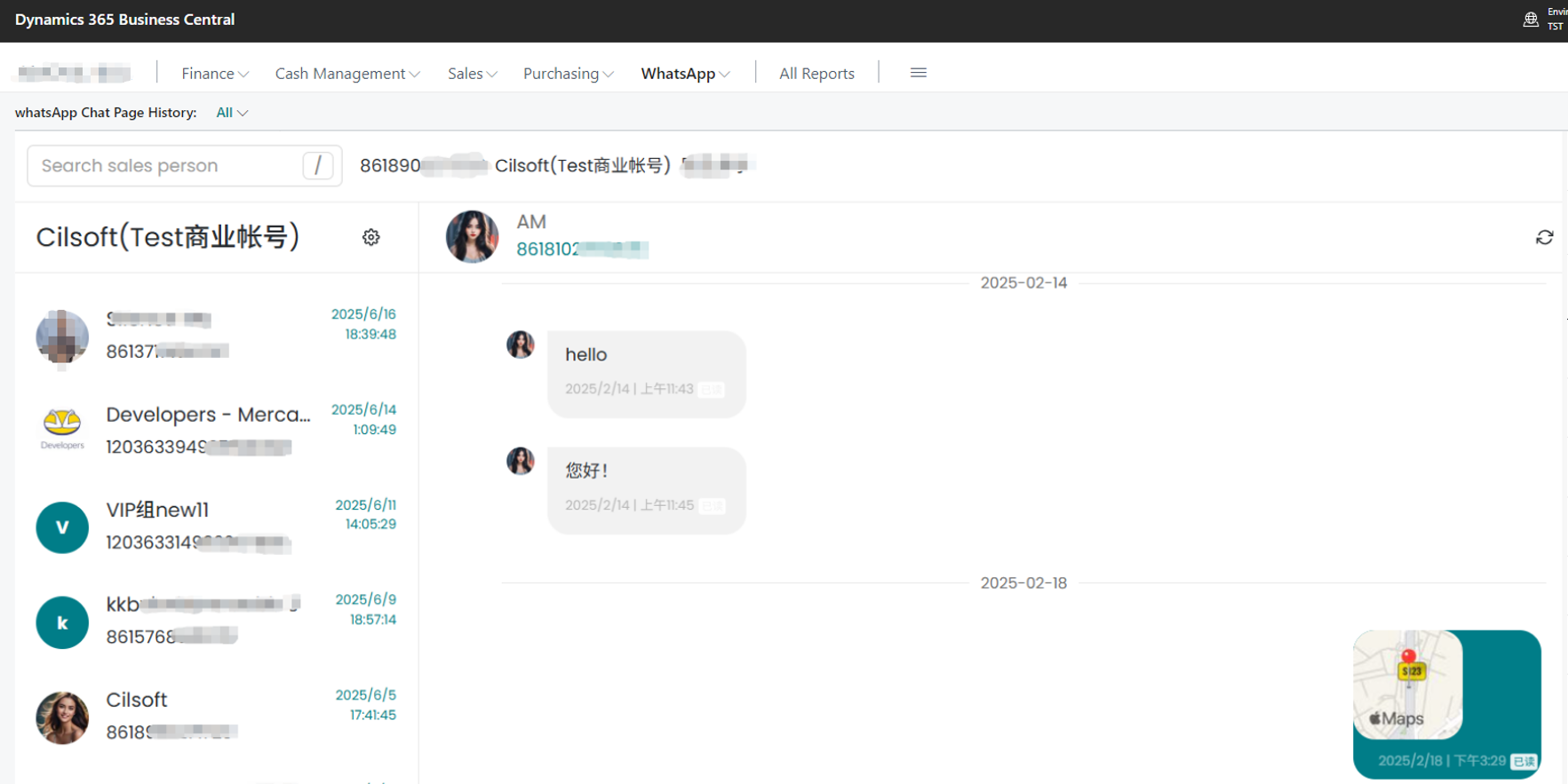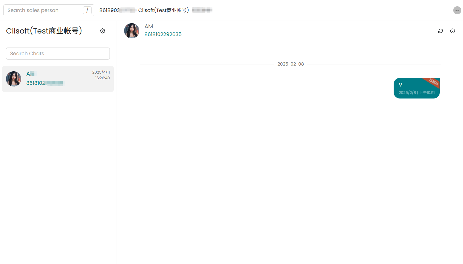 审计和可追溯性:让销售与客户的每一次沟通细节信息都成为公司数据资产,通过系统实时自动上传云端,所有 WhatsApp 消息(支持文字、图片、语音、视频、文件等)记录在 ERP 系统中,确保沟通透明且可审计。